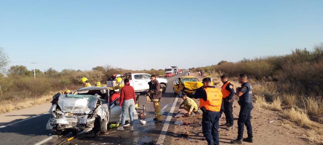 SINIESTRO VIAL FATAL RN60 km 860 Quilino, Personal de Cria. Quilino interviene en el infortunio, constatando que un automóvil Chevrolet Classic (Pcia. de Bs As) conducido por un masculino (58) acompañado de otro masculino (53) y femenina (57) con sentido N-S colisionó con un Fiat Cronos (Cba Cap)con sentido S-N conducido por masculino (54), resultando fallecida la Sra. Se traslada a los ocupantes lesionados al Hospital Romagosa por los servicios médicos. Coopera Bomberos Voluntarios Quilino, Dirección Policia Caminera y Dptal Tulumba colaboran con la regulación del transito, Interviene Fiscalia de Instrucción Deán Funes a la espera de Gabinete Criminalística.