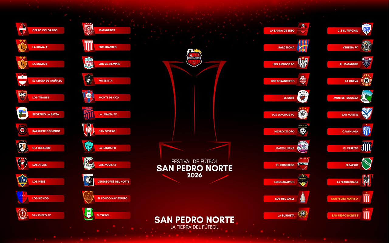 Los 48 equipos participantes están listos para este 10 y 11 de enero para vivir el Festival de Fútbol en San Pedro Norte 2026.